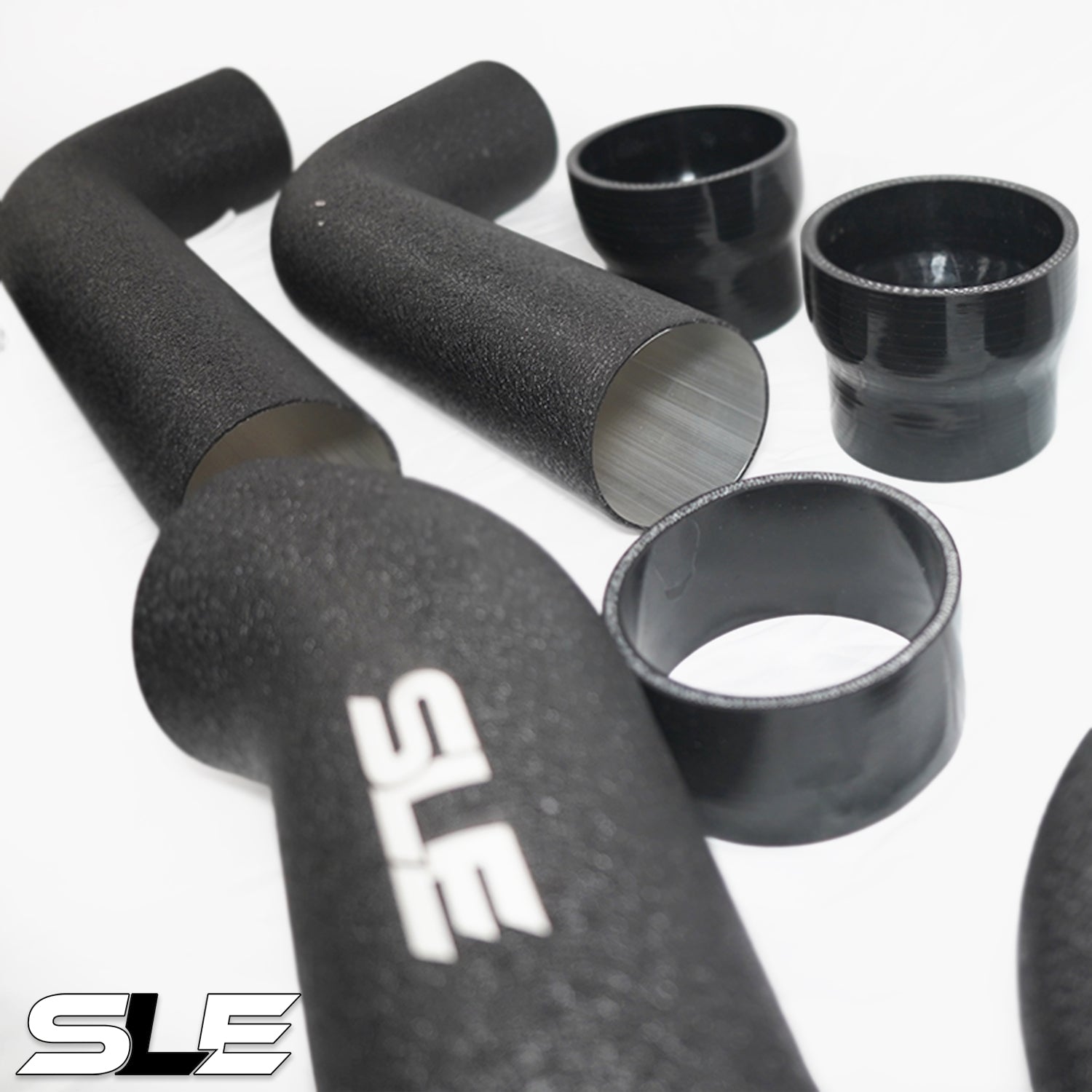 Remove the restrictive OEM intake and upgrade to the SLE Front Mount Intake System — designed to maximize airflow, reduce heat soak, and improve turbo response. This system relocates the filters behind the front grille, pulling in cooler, denser air directly into the turbochargers. Expect sharper throttle response, quicker spool, and aggressive turbo sounds that completely change the driving experience.